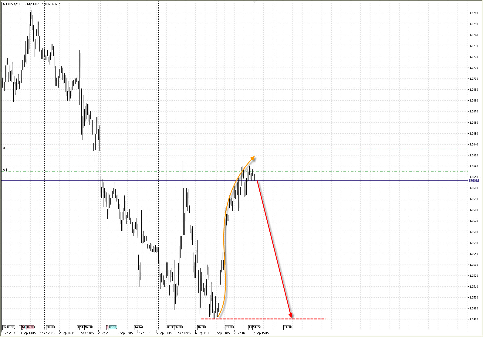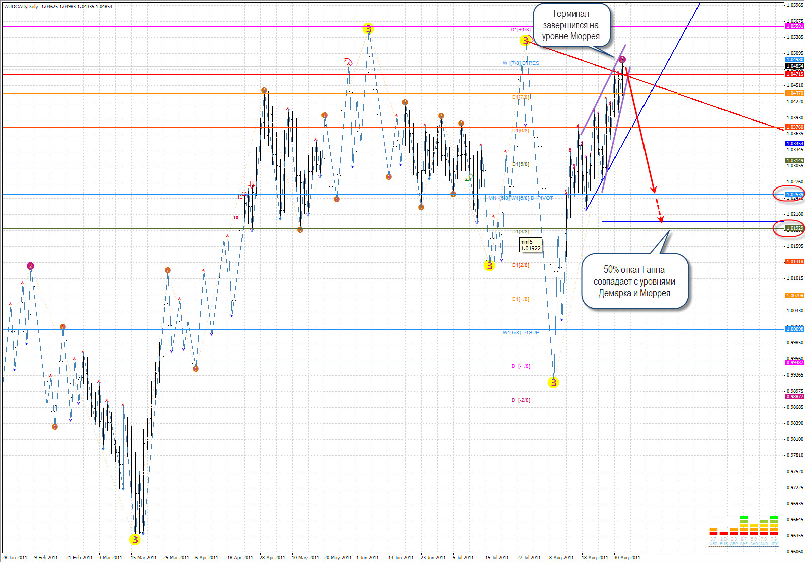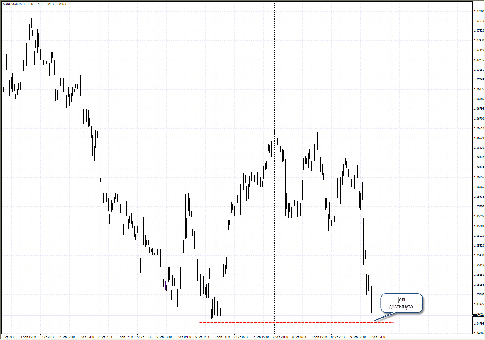 Импульс с растянутой 5-й напоминает стеллу, поэтому я назвал свою комбинацию "Стеллой". Трудно, но в принципе возможно определить завершение Растянутой 5-й, но об этом я расскажу чуть позже). Намного проще "торговать" откат Растянутой 5-й. Поэтому, этот откат и рассмотрим сейчас .) Вот как он выглядит в реальности: