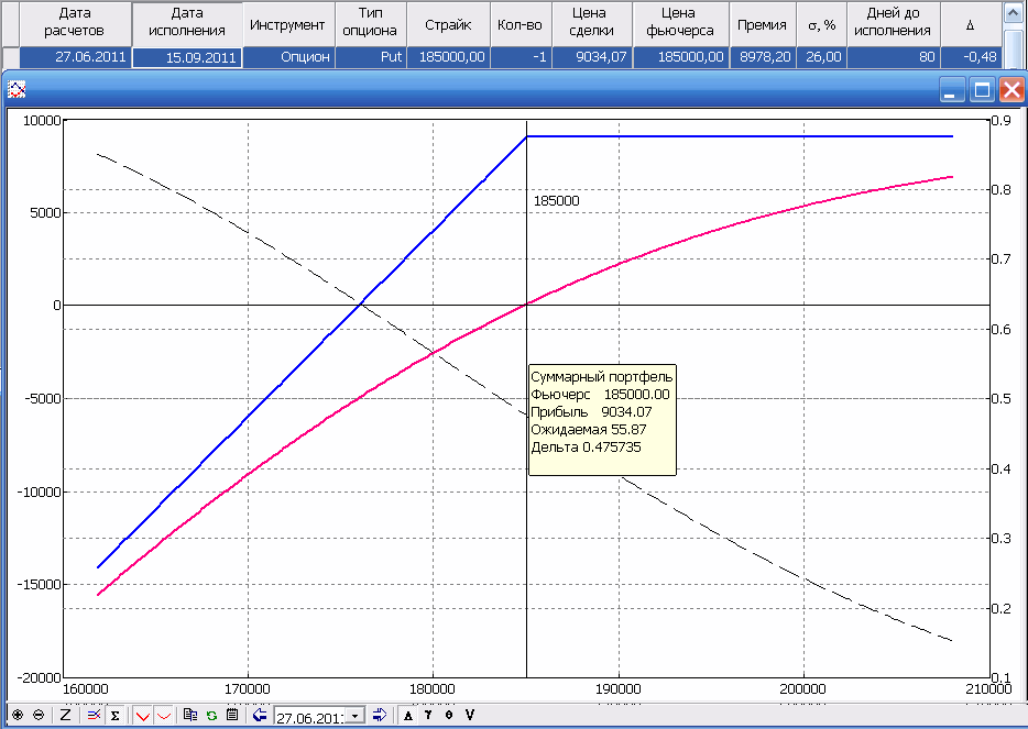 • Посмотрите на совокупную дельту нашего опционного портфеля.