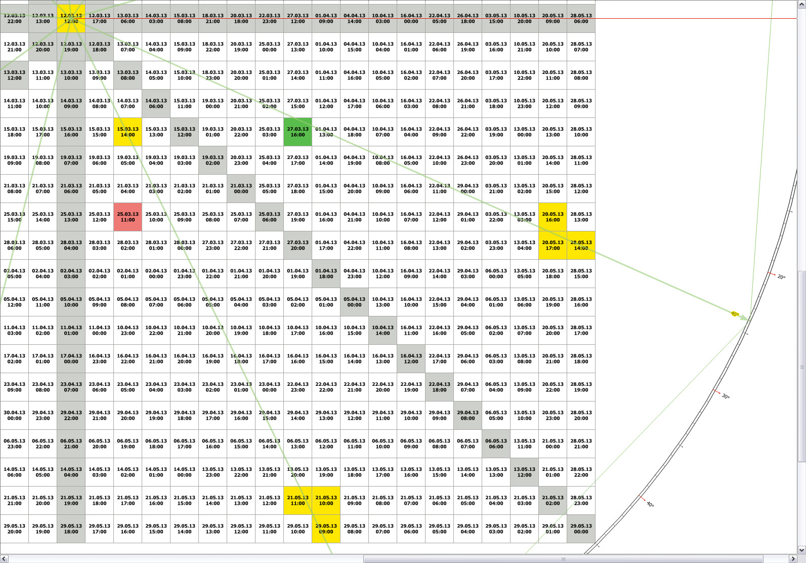 Для удобства, время разворота выписано на отдельный листок