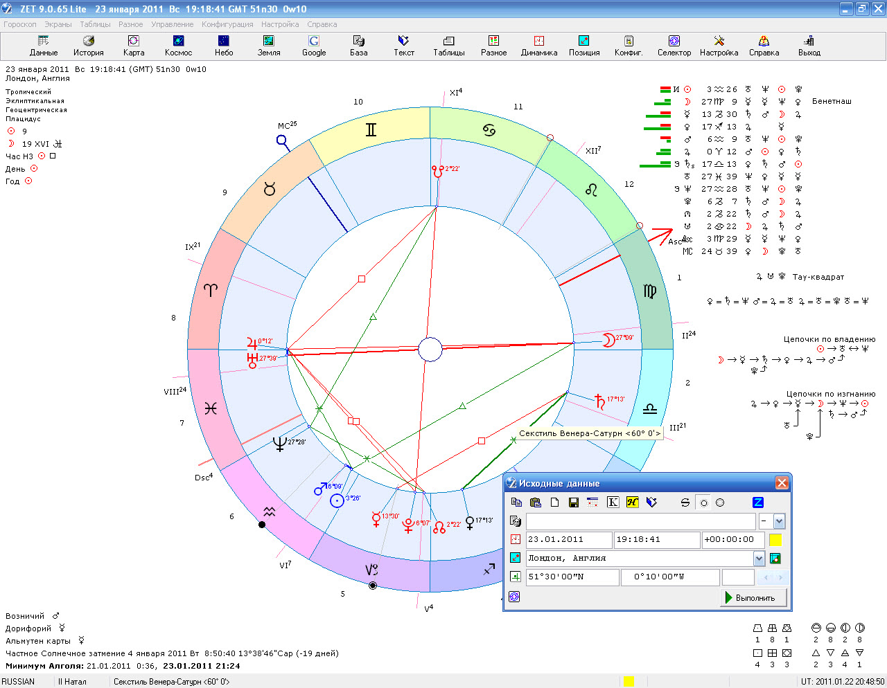 На помощь приходит история этих аспектов. Надо только выбрать чтобы тоже самое было. Чтобы Венера была так же следовала за Солнцем, чтобы Сатурн был позади.