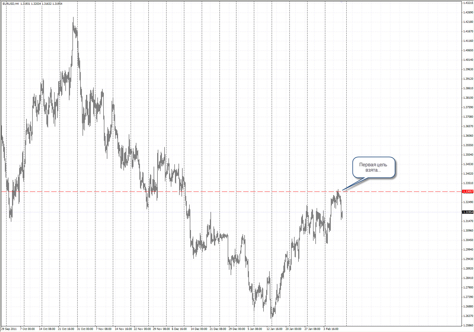 Выполнение прогноза EURUSD Н1