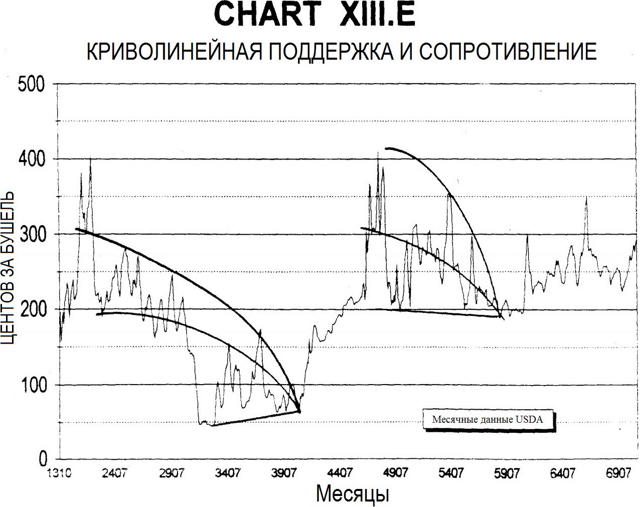 Брэдли Коуэн в своей книге "Динамика рынка" отметил, что рынок не движется по прямым линиям, и характер движения отражает накопление (угасание) энергии и... скачкообразный выход её на более высокий (низкий) уровень: