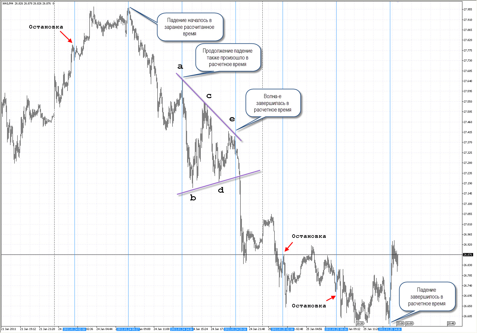 Выполнение прогноза Времени разворота Серебра