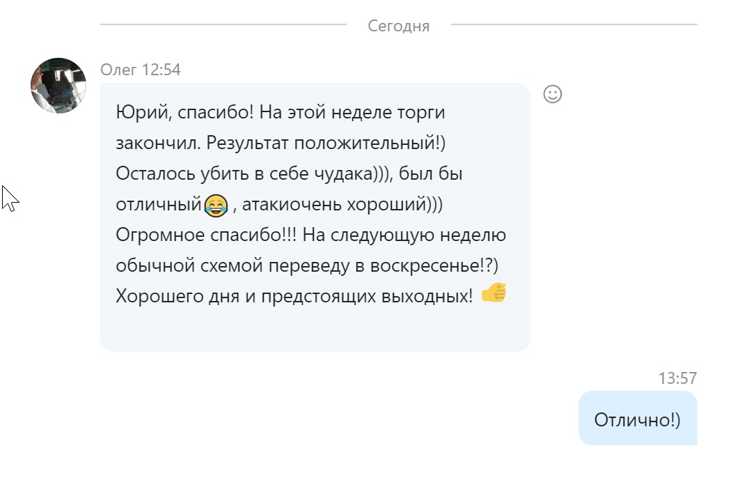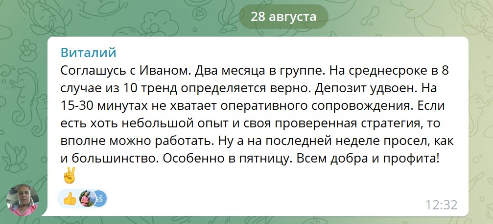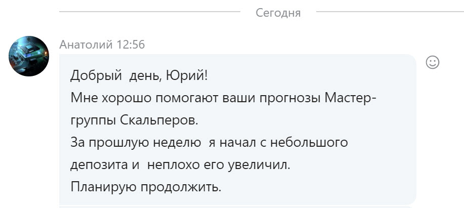 Отзыв трейдера Паши из Мастер-группы Скальперов (отрывок из сегодняшней 15.08.22 переписки в личке)