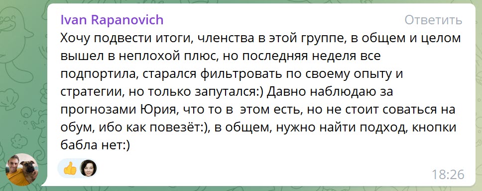 Отзывы из группы в телеграмме: